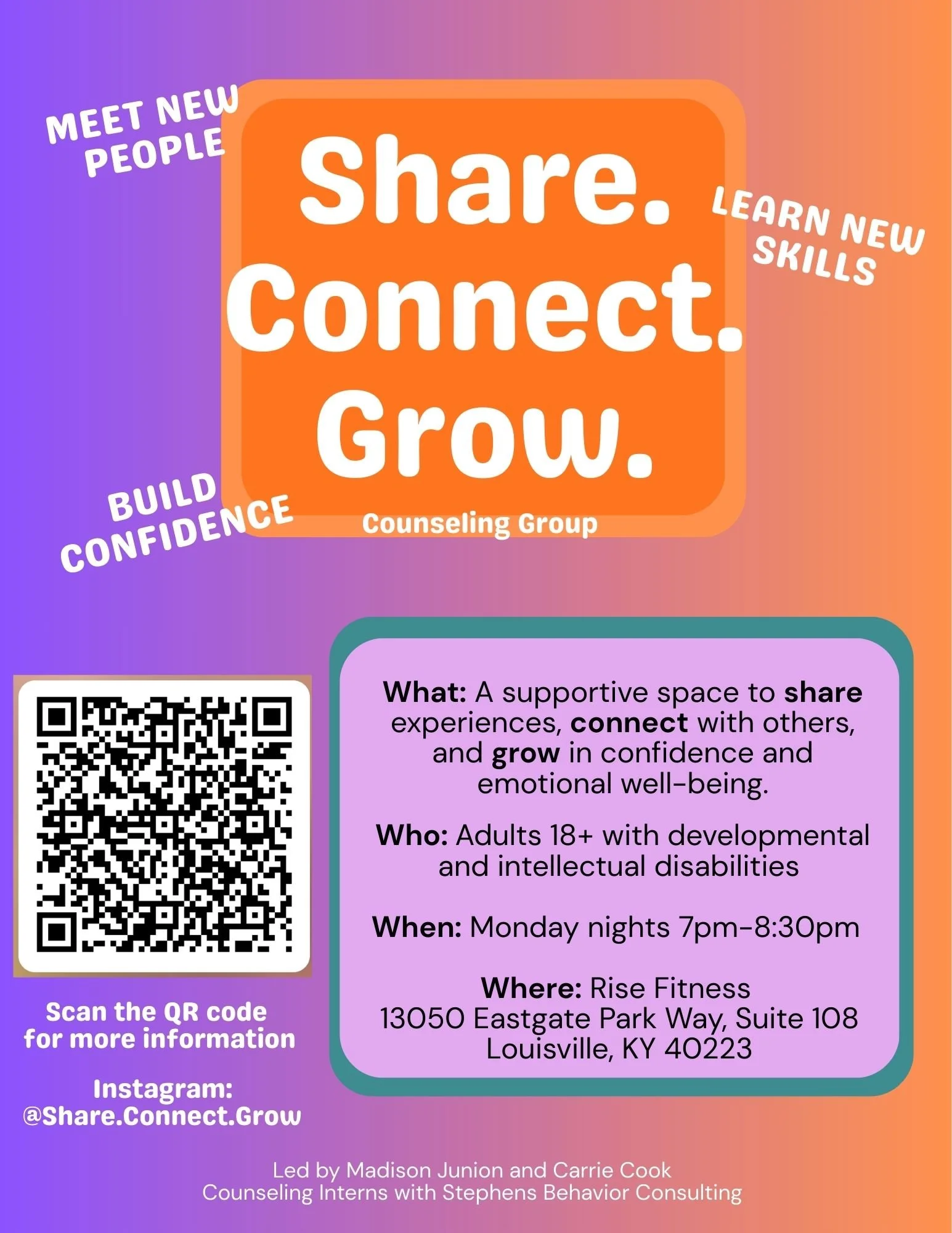 A supportive, in-person group for individuals wanting to strengthen social skills and build meaningful connections. This group is now accepting new participants that are 18+ seeking opportunities to learn new skills, build confidence, and meet others.